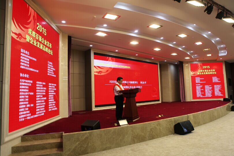 16日下午14點(diǎn),2015成都百?gòu)?qiáng)企業(yè)發(fā)布會(huì)暨企業(yè)發(fā)展高峰論壇在天府國(guó)際金融中心會(huì)議室拉開帷幕,成都市經(jīng)信委等相關(guān)單位領(lǐng)導(dǎo)以及來(lái)自成都各大企業(yè)代表、電視媒體等三百余人參加了此次會(huì)議。集團(tuán)副董事長(zhǎng)代表集團(tuán)接受頒獎(jiǎng)并作為民營(yíng)企業(yè)代表發(fā)言。