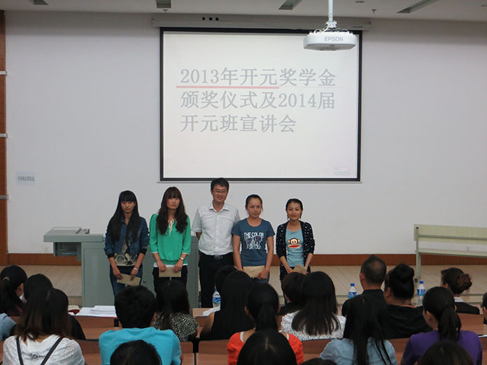 同時(shí),集團(tuán)還在學(xué)院設(shè)立了開元獎(jiǎng)學(xué)金,該獎(jiǎng)學(xué)金并不僅僅針對(duì)開元班的學(xué)生,而是面向全校14個(gè)院系的8000多名學(xué)生。6月,昆明冶專教務(wù)處通過(guò)“公平、公正、公開”的遴選,最終確定樊慧、田莎莎等14名學(xué)生分別獲得2013年度的一、二等獎(jiǎng)學(xué)金,其中樊慧、阮嬌、費(fèi)宇均來(lái)自于開元班。