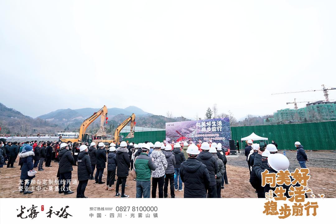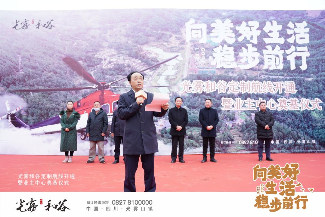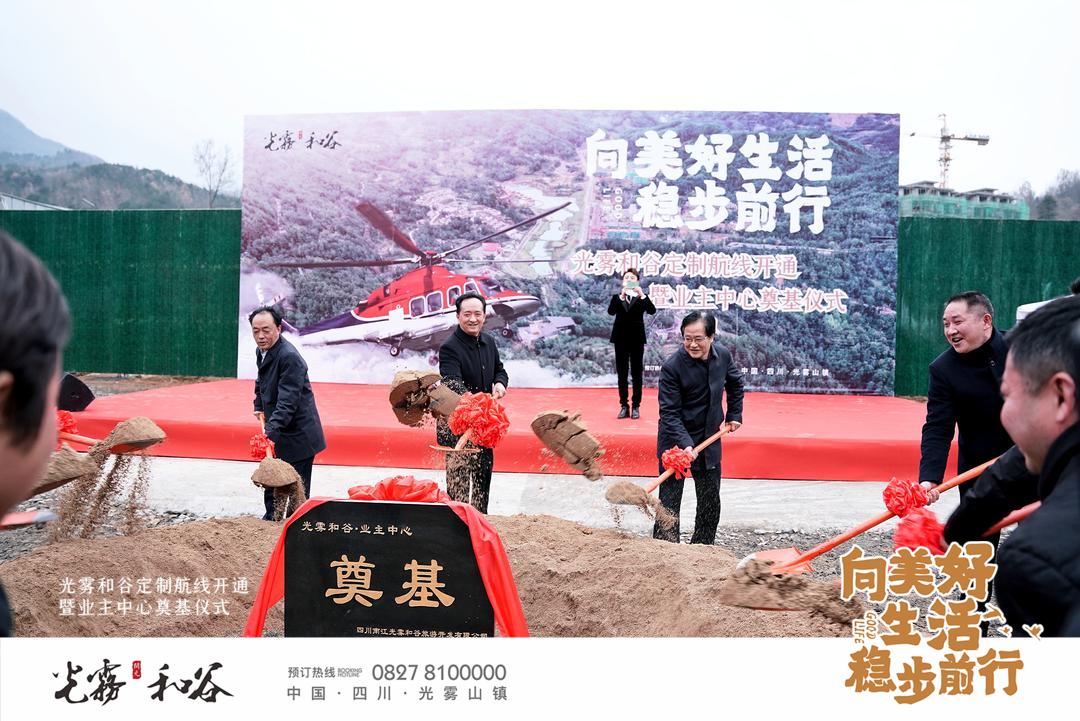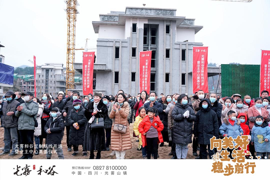 2021年1月2日,新年伊始,開元集團在美麗的光霧和谷舉辦了直升機定制航線開通暨業主中心奠基儀式。光霧和谷項目公司和下屬施工單位的同事們精心準備、嚴陣以待,熱烈歡迎各界嘉賓光臨。上午9時,活動正式開啟,南江當地政府相關領導、光霧和谷部分業主代表及光霧山鎮廣大群眾共數百人蒞臨活動現場,與工作人員一起共同見證光霧和谷項目邁入新的階段。