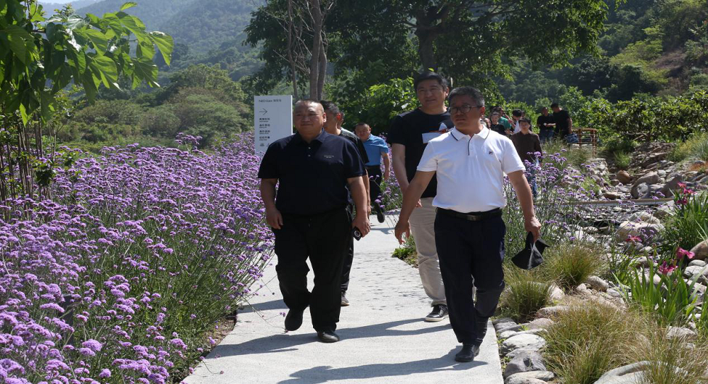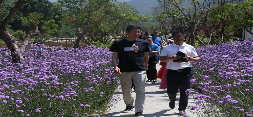 隨后考察團沿溪邊步道一路行向澗茶臺,當下恰逢公園花卉盛開季,大家一邊暢談交流,一邊領略美麗風景。