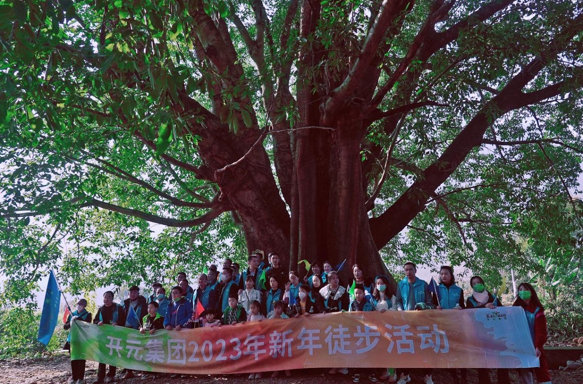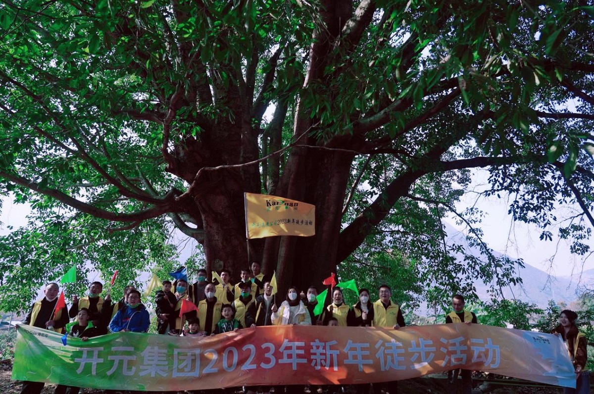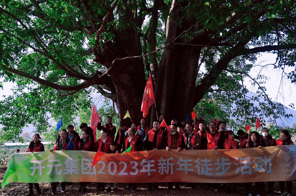 新年徒步活動于海花溝溝口出發,200余人的徒步隊伍彩旗招展,整裝待發。