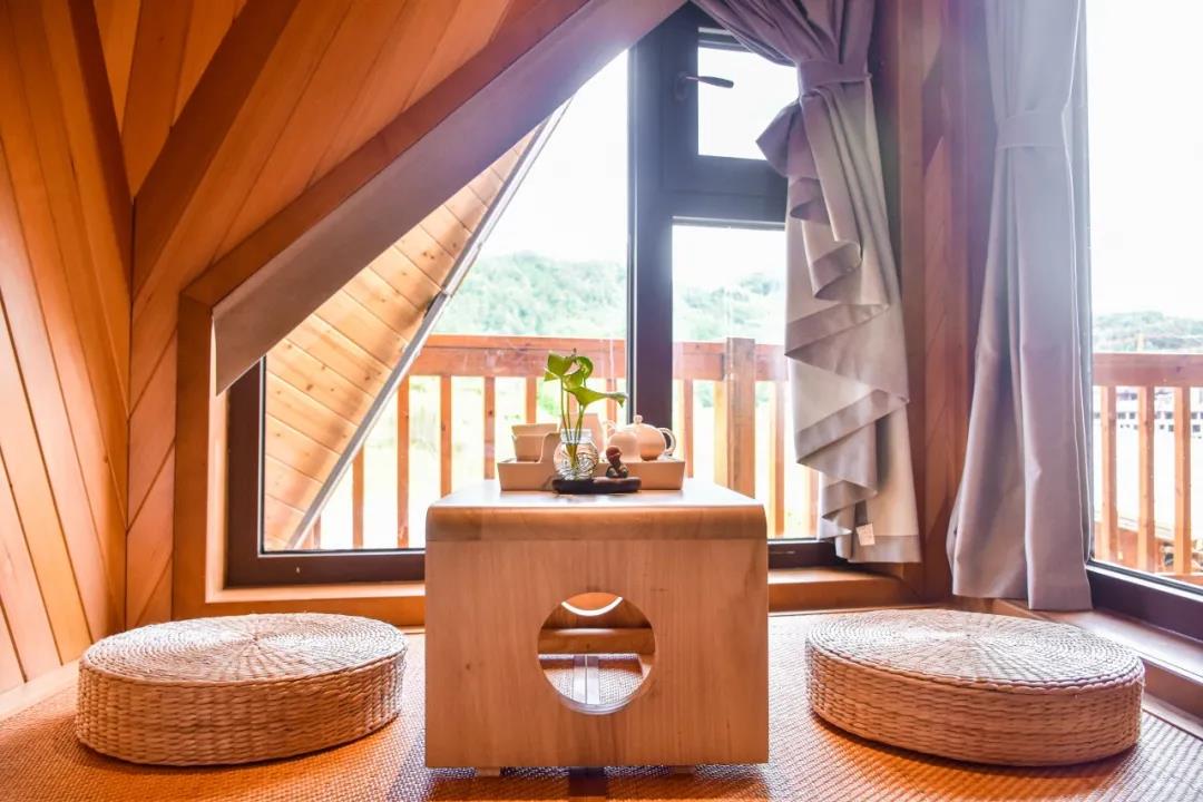 在木屋文化的發(fā)源地愛沙尼亞,木屋被稱為“同居住者共呼吸”的建筑。因?yàn)槟疚萁Y(jié)構(gòu)建筑通過合理設(shè)計(jì)與布局,適量吸收太陽(yáng)光線,雨季還能調(diào)節(jié)室內(nèi)濕度。走進(jìn)客房?jī)?nèi),便能聞到木材散發(fā)出富含芬多精的原木清香。角落里特設(shè)的榻榻米和精致茶臺(tái),更是讓客人得以在迷人景致中舒坦心境,享受靜謐空間。
